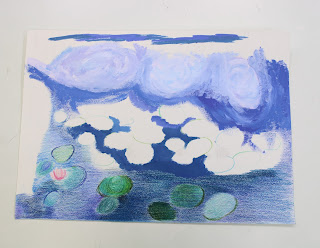 モネの睡蓮を色々な画材を使いながら模写をしています。手前側は色鉛筆の重ね塗りで複雑な色味を表現しており、奥の方は絵の具の大胆なタッチを用いることにより、手前と奥をうまく対比させることに成功していると思います。色の重ね方や筆のタッチ、画材の扱い方など模写を通して一枚の作品の中で色々な学びがありそうですね🔥引き続き頑張りましょう!